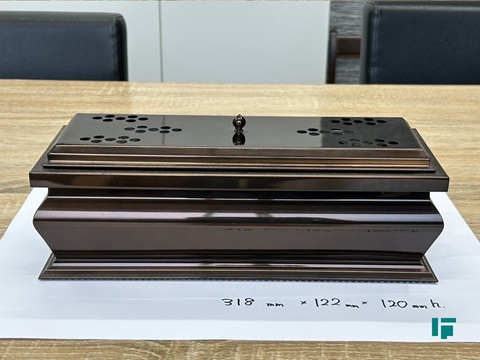 | 仕様 | ■材質:アルミ ■サイズ:幅318mm×奥行122mm×高さ120mm ※高さはつまみを含みません。 ■落とし(二重構造)、蓋付き ■色:新登久色(光沢のあるこげ茶色) |
